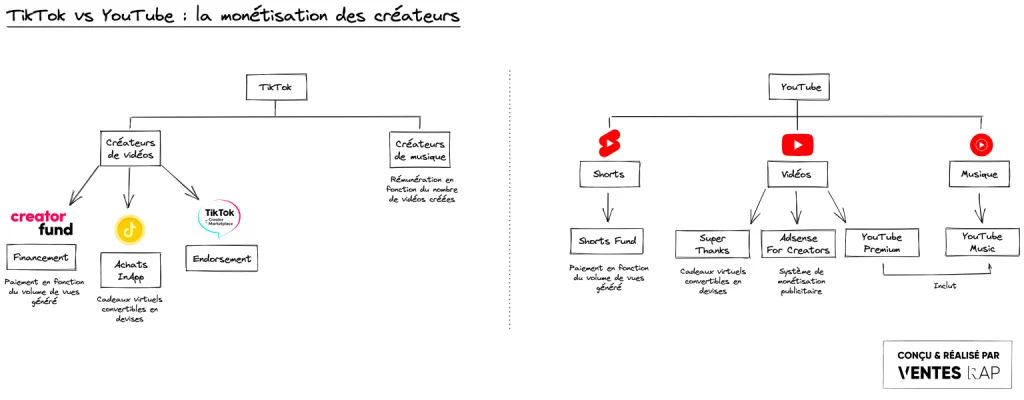 De son côté, TikTok compte plus d’un milliard d’utilisateurs mensuels, qui passent en moyenne 52 minutes par jour sur l’application. En réponse à la création de Shorts, le réseau social de ByteDance allonge la durée de ses vidéos de 60 secondes à 3 minutes en 2021, puis de 3 à 10 minutes en 2022.
