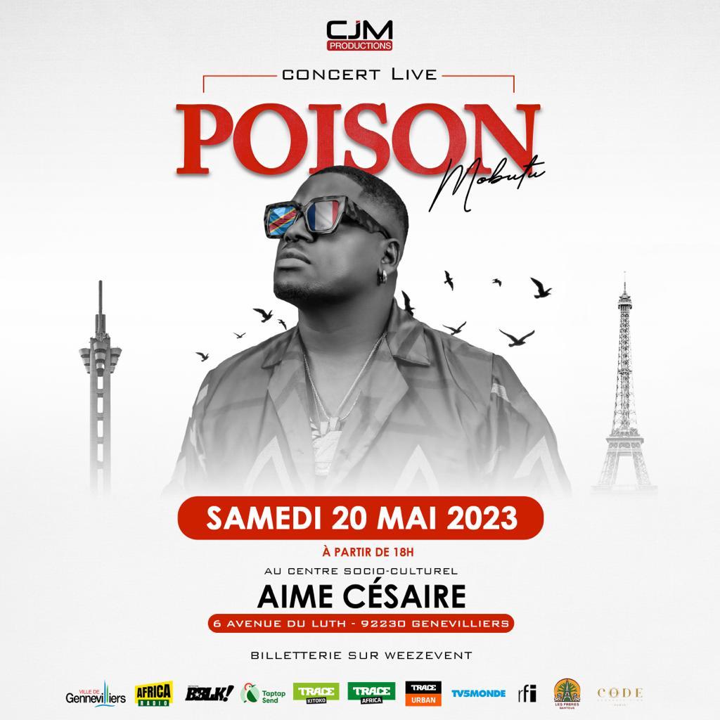 Le rappeur français d’origine congolaise, Poison Mobutu, a annoncé qu’il donnera un concert live à l’espace Aimé Césaire de Paris le 20 mai prochain. Ce concert sera l’occasion pour l’artiste de présenter ses derniers titres, ainsi que ses classiques, sur scène.