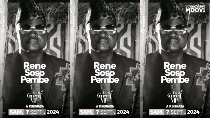 René Soso Pembe est annoncé en concert live very important person (VIP) le 7 septembre 2024 à Kinshasa.