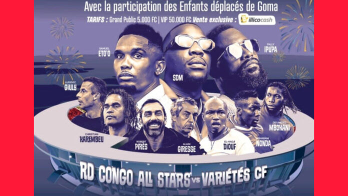 L’événement sera suivi d’un dîner officiel, réunissant des invités prestigieux et des figures emblématiques du sport et de la culture. Parmi les participants, on retrouvera des stars telles que Fally Ipupa, SDM (…) et des légendes du football comme Samuel Eto’o, Christian Karembeu, Pires et Alan Giresse. Les équipes RD Congo All Stars vs Variétés FC, composées de personnalités connues, s’affronteront lors d’un match qui vise à promouvoir la paix et la solidarité.