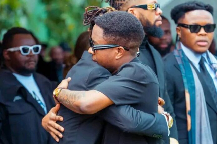 Personne n’attendait sa venue sur ce lieu de recueillement pour rendre les derniers hommages à maman Agnès Mbombo. Fabilouss s’est pointé et a pris place sur le même rang que Zozo Machine.
